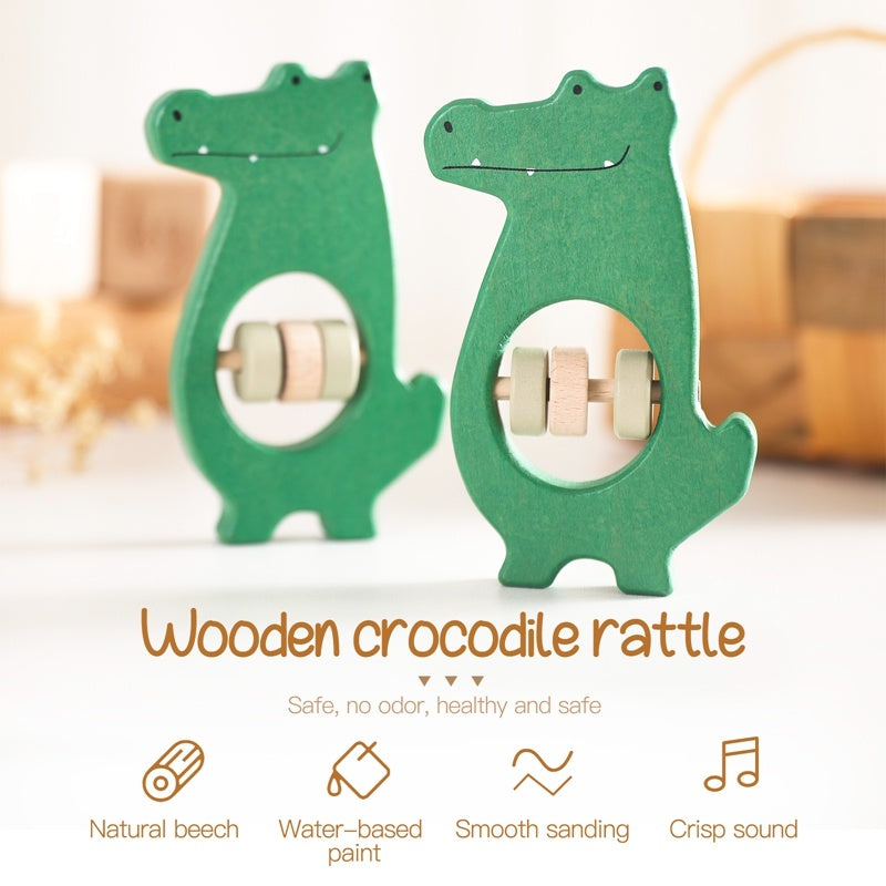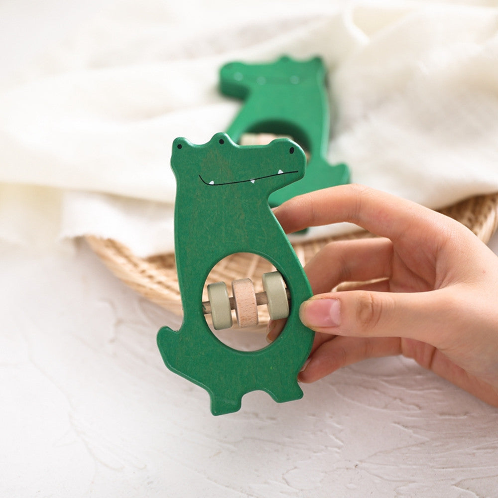 This thoughtfully curated toy includes a green crocodile with rotating wooden beads that make a gentle, soothing sound when shaken. Whether used during tummy time or as an early motor skill toy, this set makes a perfect first gift for conscious parents seeking beauty, function, and sustainability.