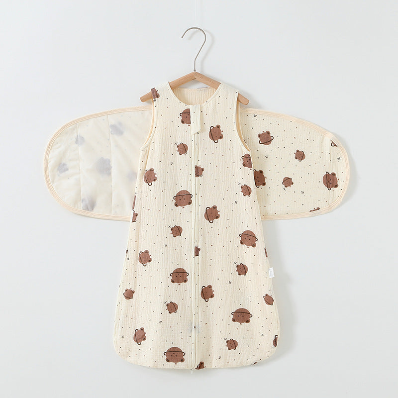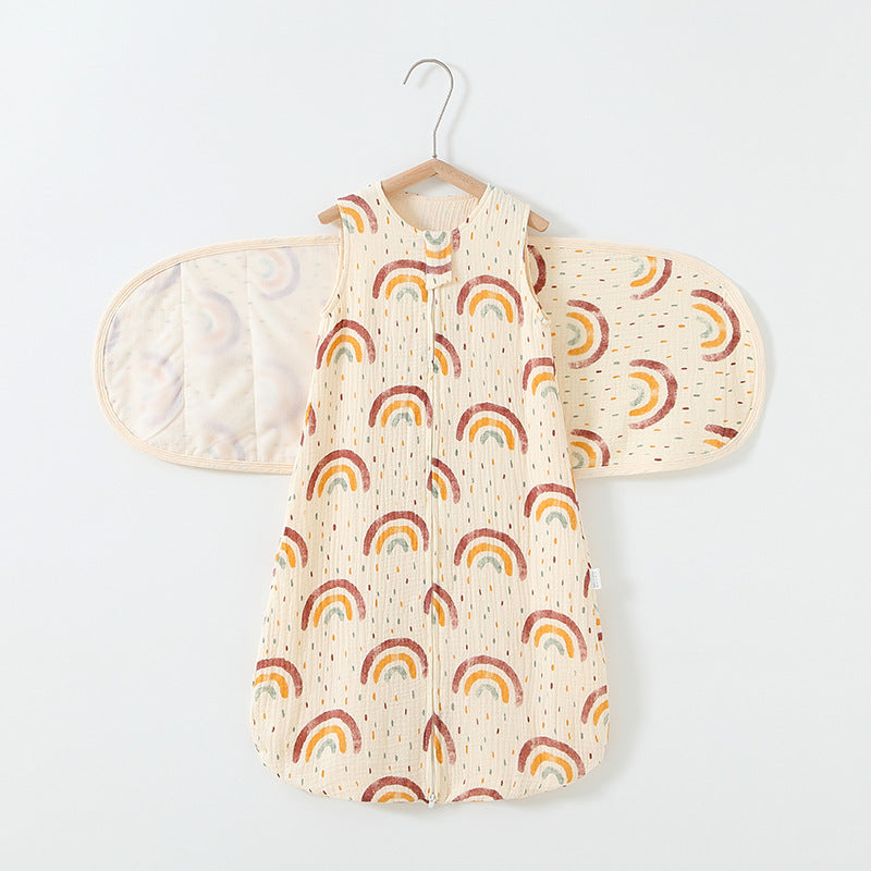 Crafted with four layers of breathable, cotton gauze, this sleep sack is completely free of polyester, flame retardants, and harsh dyes. Its soft wrap-around wings gently suppress the startle reflex, helping your baby rest longer—and you finally get the peace of mind you’ve been craving.